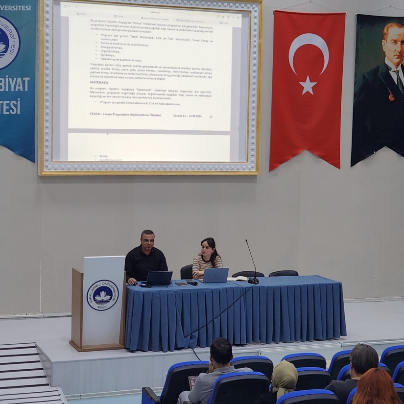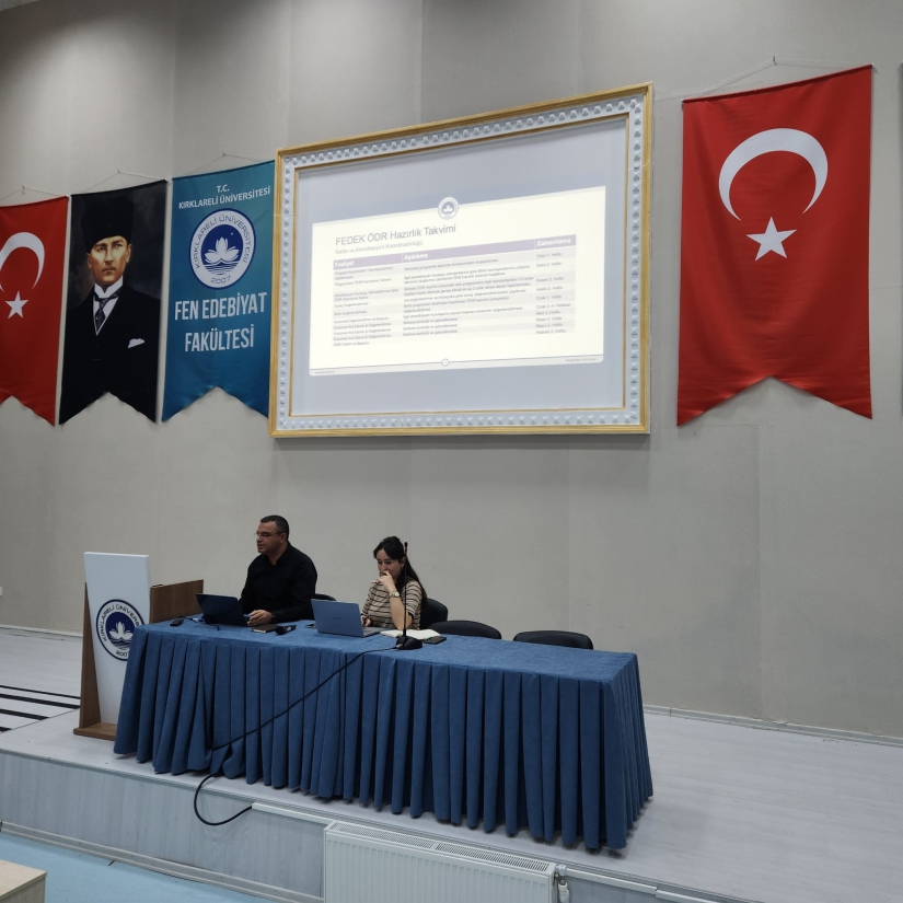 24.10.2025 tarihinde, Dekan Yardımcımız Doç. Dr. Nurdan KURNAZ YETİM başkanlığında tüm bölüm sorumlularının katılımıyla FEDEK Akreditasyon Bilgilendirme toplantısı Fakültemiz Konferans Salonunda gerçekleştirildi. Toplantıda, Matematik Bölümü Program Akreditasyon Temsilcisi Dr. Öğr. Üyesi Ersin ŞENER’in FEDEK ÖDR hakkında bilgilendirme sunumunun sonrasında bölümlerin akreditasyon sürecindeki mevcut durum analizi yapıldı.