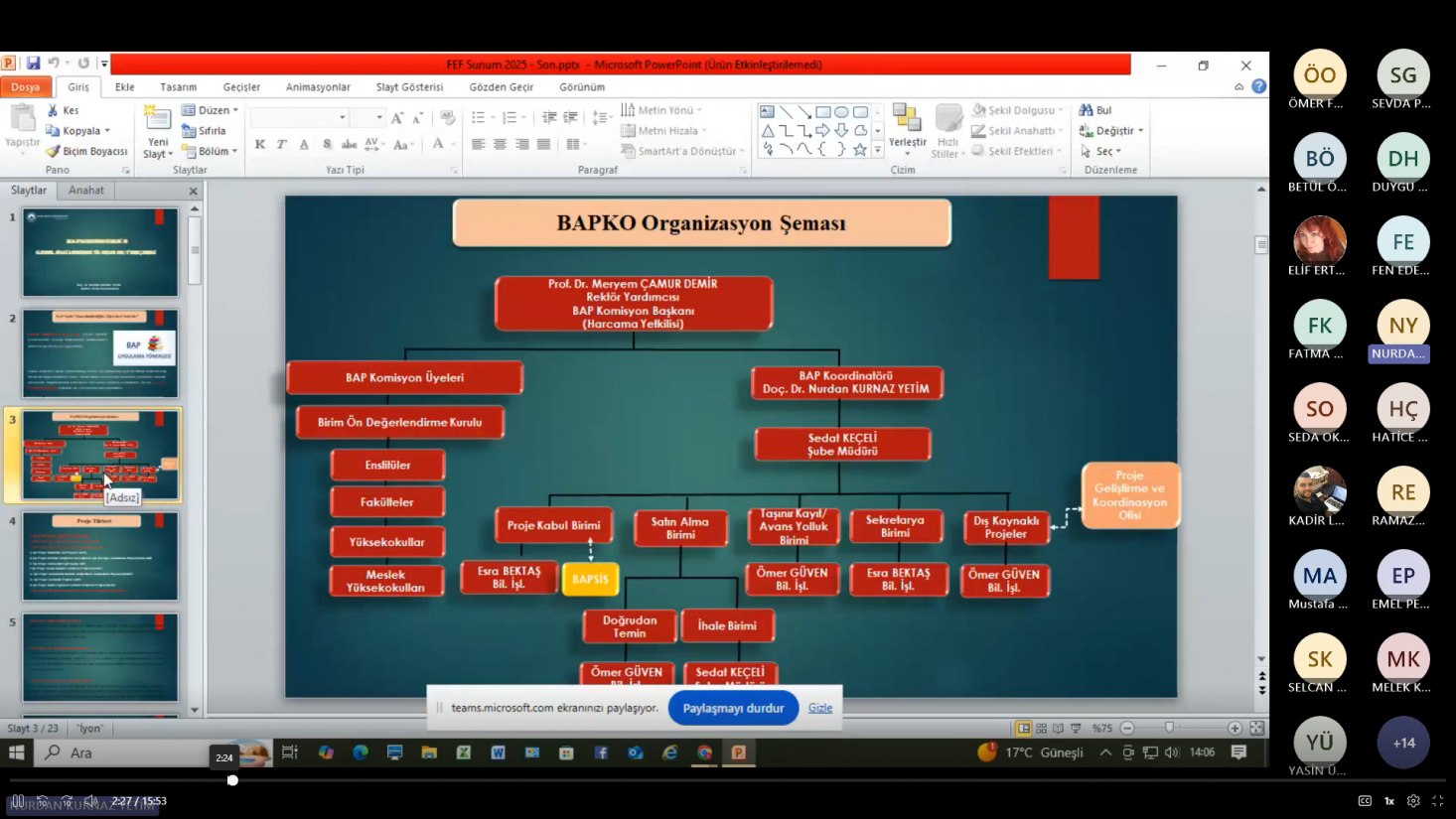 2025 yılı Ekim dönemi Bilimsel Araştırma Projeleri (BAP) başvuruları ile ilgili, 21 Ekim Salı günü saat 14:00’da Fakültemiz Öğretim Üyelerine yönelik Microsoft Teams üzerinden BAP Bilgilendirme toplantısı gerçekleştirilmiştir. Toplantıda, başvuruya açık proje türleri, proje destek limitleri ve başvuru süreci hakkında dikkat edilmesi gereken hususlar paylaşılmıştır.