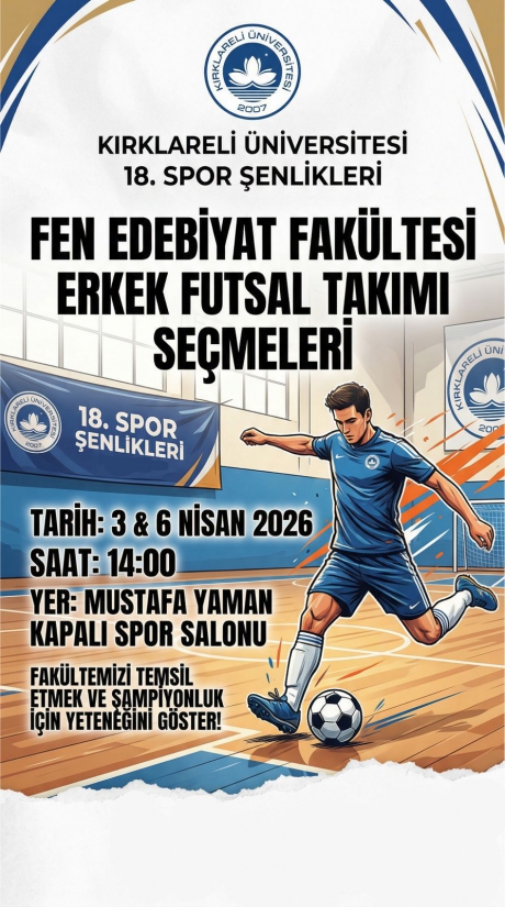 Fakültemiz Erkek Futsal Takımı seçmeleri başladı. Detaylar Afişte belirtilmiştir.